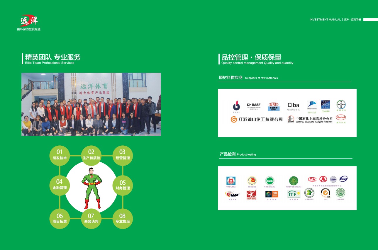 工厂自2006年成立以来由4个人、600平方米起步,发展至今已拥有中山、湖北两大生产基地,并具备多套专业施工机械和过百人的一流施工队伍。远洋采用德国PU先进技术,是行业安全标准起草者,目前以“5大环保标准、6大高端品质”精准地开拓出一条差异化竞争的发展之路,势要紧抓重新铺装塑胶跑道的良好契机,承诺为大众带来超越国标、更加环保健康的运动场地。